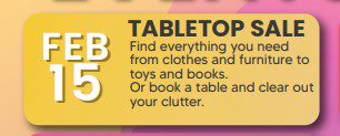 We are now taking bookings for our February 2026 Indoor Table Top Sale, which is on Sunday 15th February, 10.00 am – 1.00 pm.